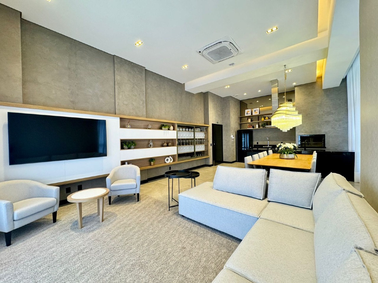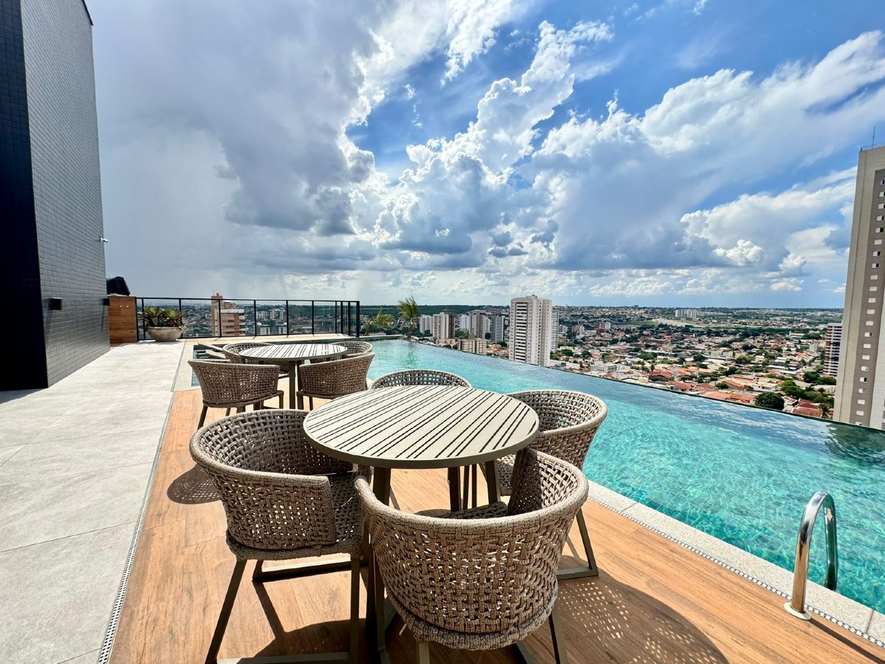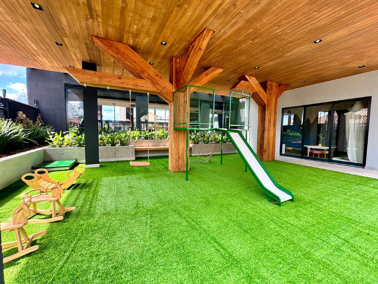 - Lazer completo: piscina com deck solarium e borda infinita no ático, Sky Bar, academia equipada, Espaço Tererê, salão de festas decorado, brinquedoteca, playground, e Espaço Gourmet.