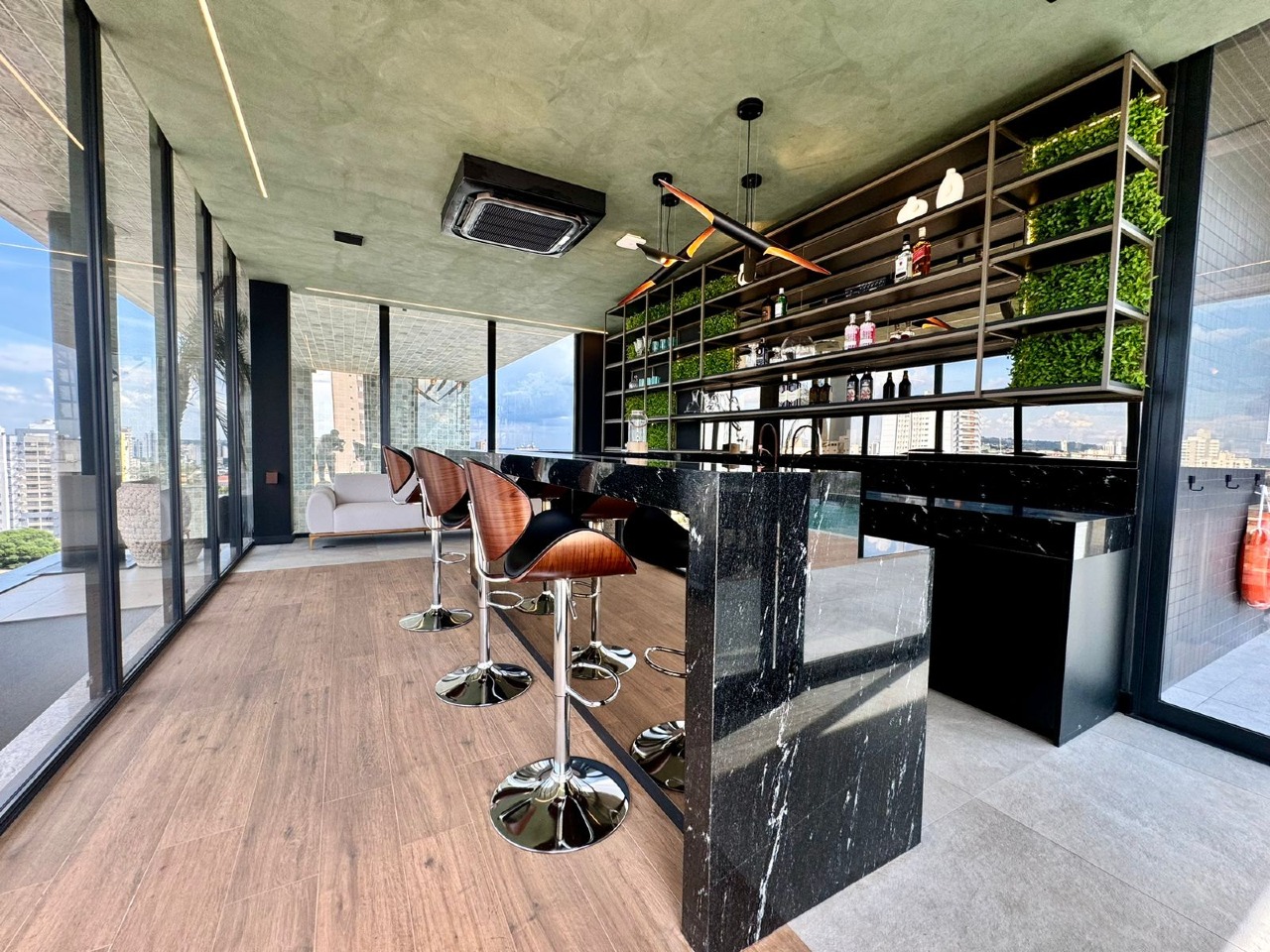 - Lazer completo: piscina com deck solarium e borda infinita no ático, Sky Bar, academia equipada, Espaço Tererê, salão de festas decorado, brinquedoteca, playground, e Espaço Gourmet.
