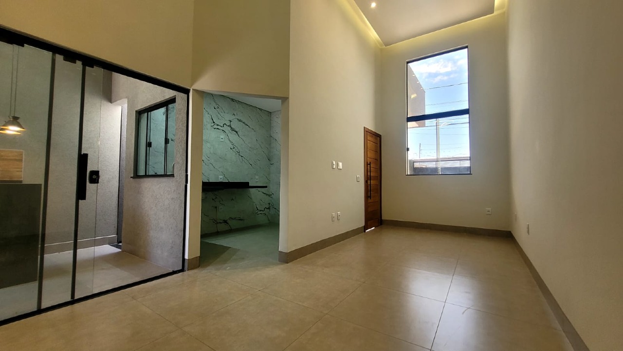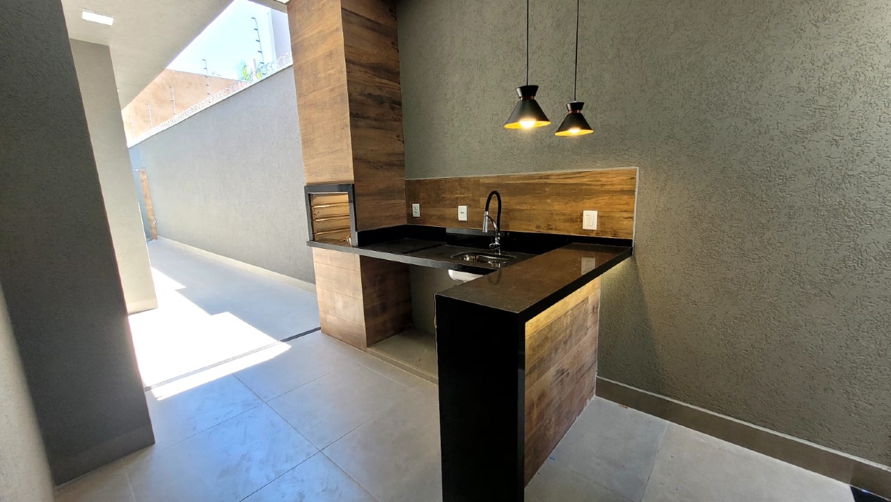 Casa com 3 quartos, sendo uma suíte, sala, cozinha, 2 quartos, banheiro social, área de serviço coberta, 2 vagas de garagem, corredor lateral, quintal, espaço gourmet, ótimo acabamento e pé direito duplo. Área construída de 100 m² e área de terreno de 180 m².