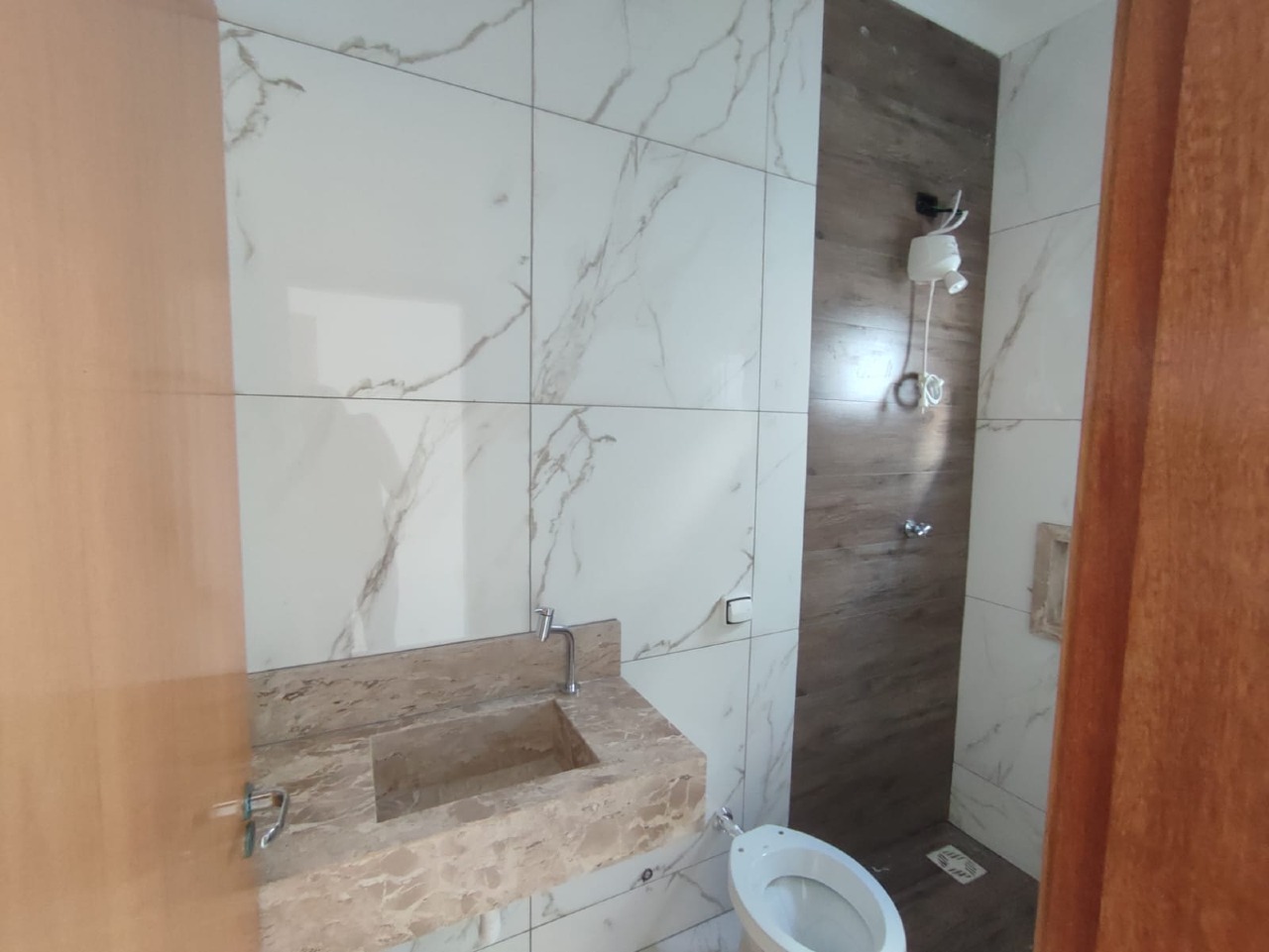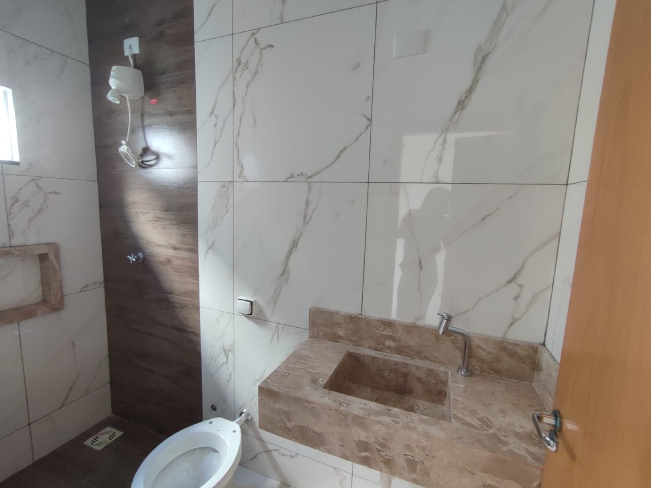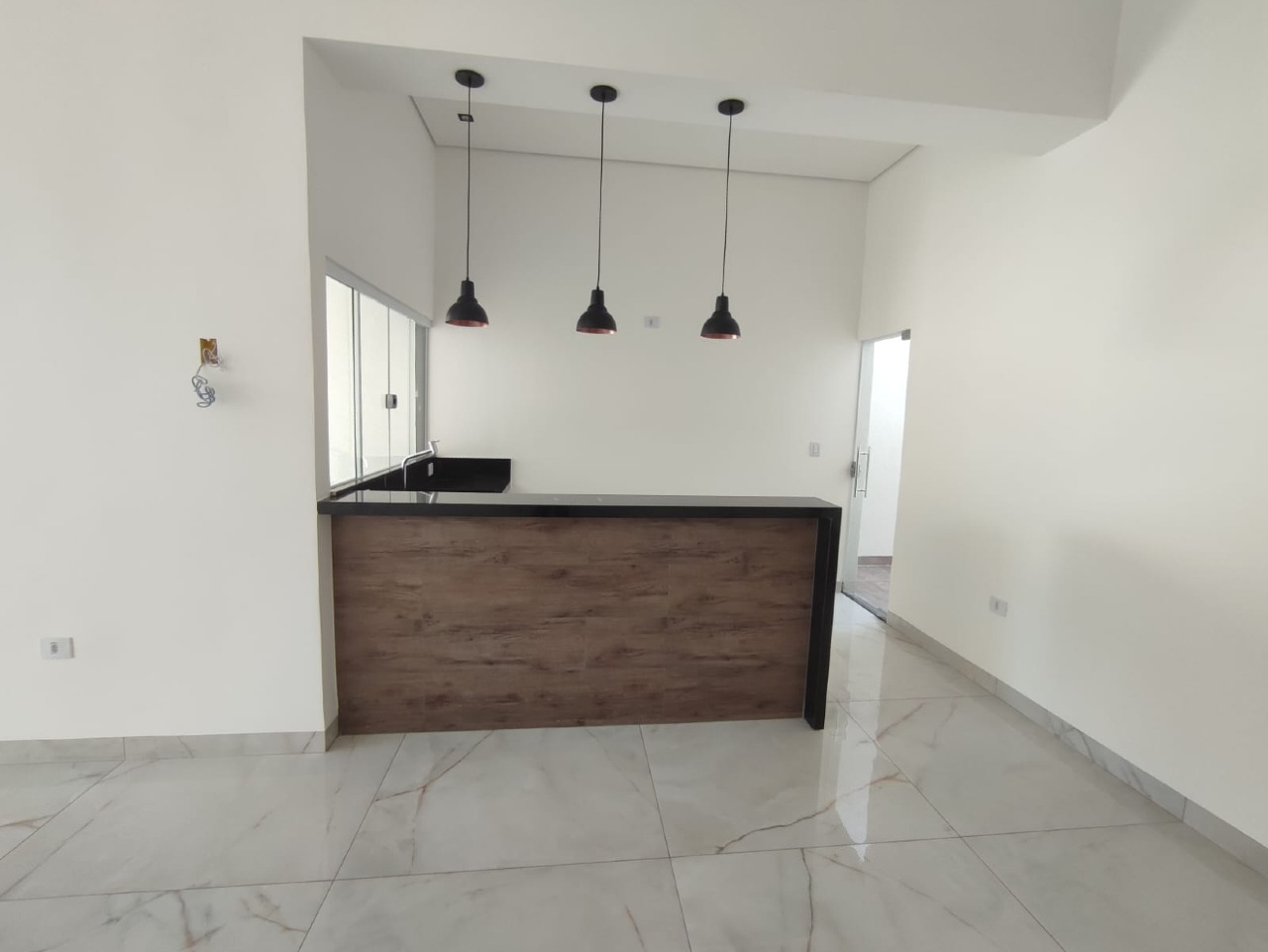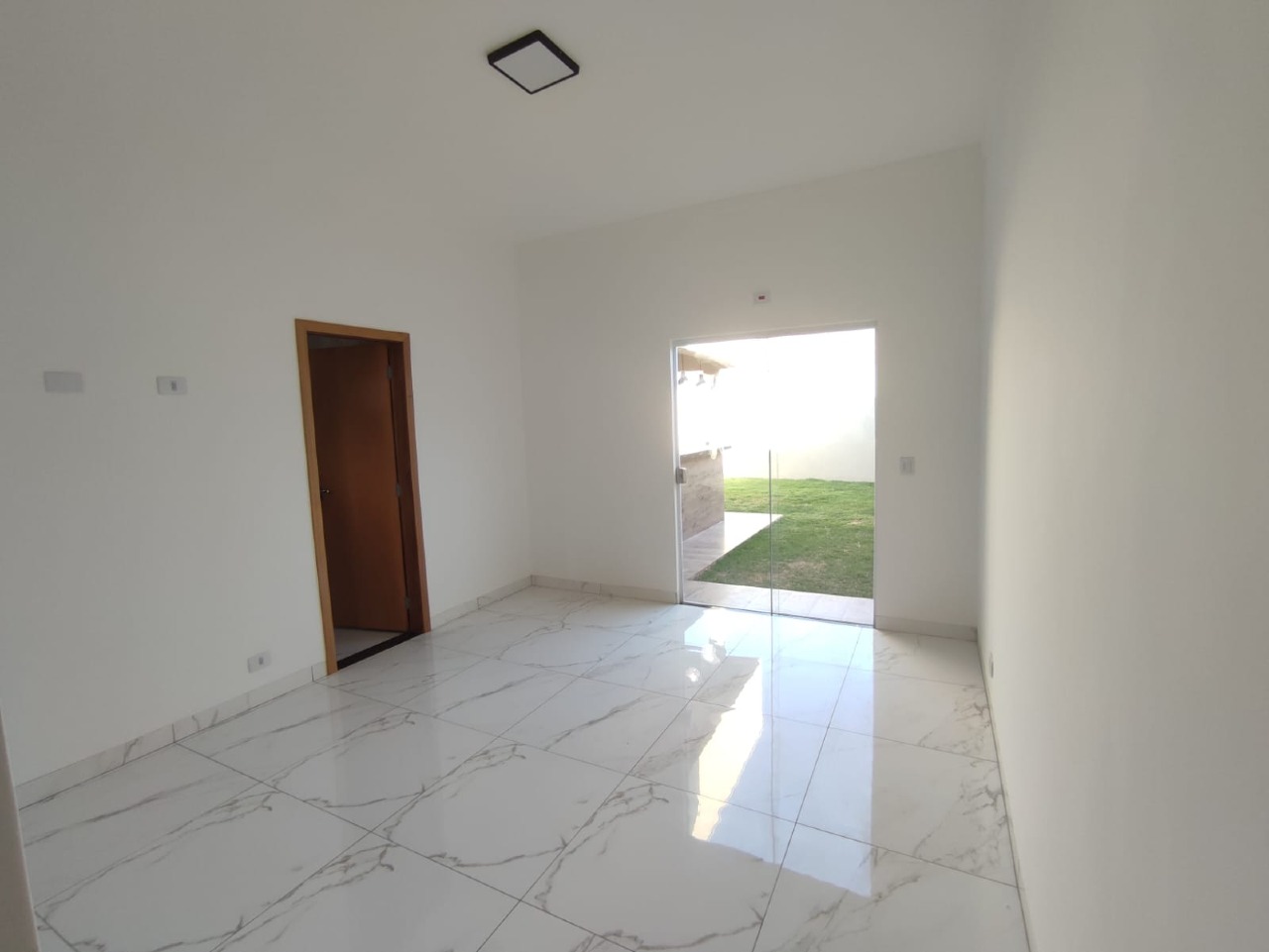 O acabamento dessa casa é de ótima qualidade, com materiais selecionados que garantem durabilidade e beleza. A sala também possui pé direito alto e tem um rebaixamento em gesso, proporcionando um ambiente elegante e diferenciado.