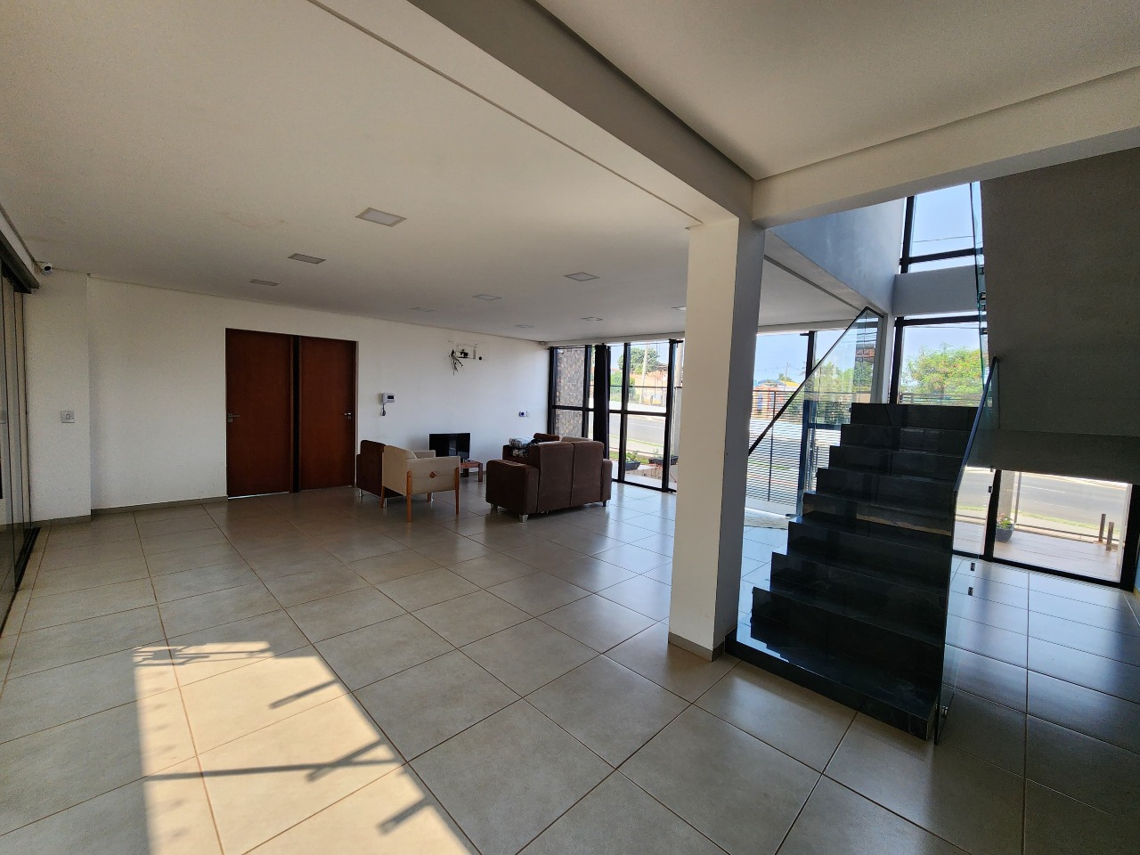 Hall de Entrada: Moderno e sofisticado, o hall de entrada conta com um jardim de inverno, integrando natureza e arquitetura, proporcionando um ambiente acolhedor e refinado para receber clientes e visitantes.